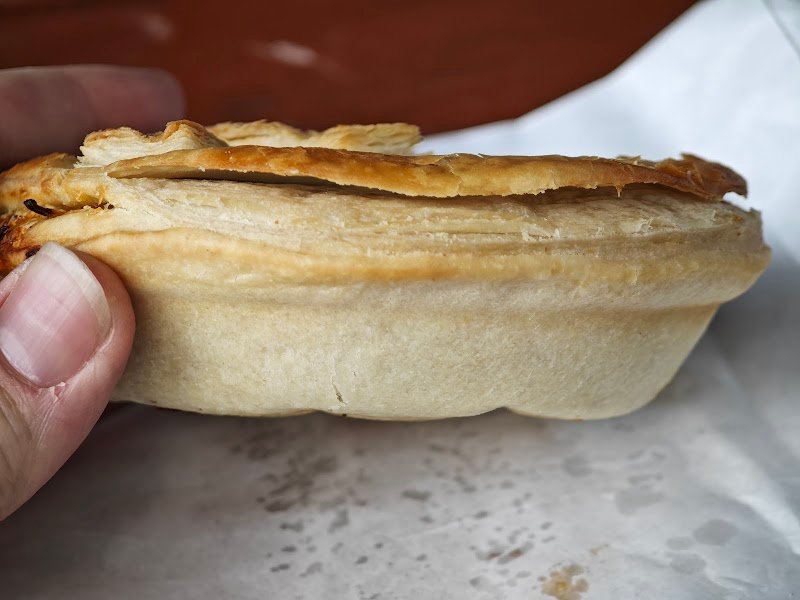 We had the steak and mushroom and steak and bacon pies and a sausage roll. The pies were 10/10 cooked and tasted perfect with the right amount of firmness and crumbling. The sausage roll is a close 9/10 due to it being slightly dry but that was all we could fault. Will definitely will be back.