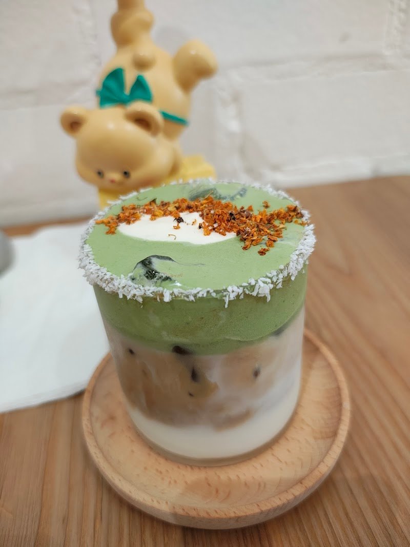 We had the matcha osmanthus and peanuts coffee w dubai chocolate cake and it was delicious!!! Nice area too.